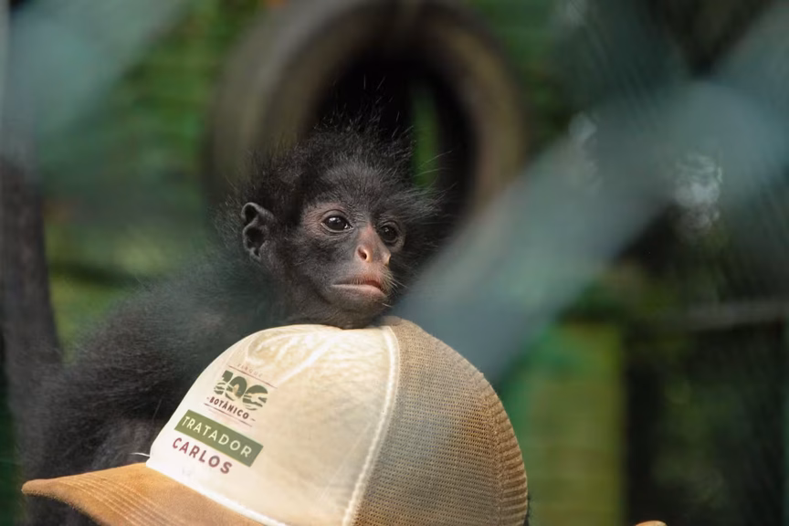 Benjamin, o macaquinho mais jovem do Zoobotânico de Brusque, completa 2 anos