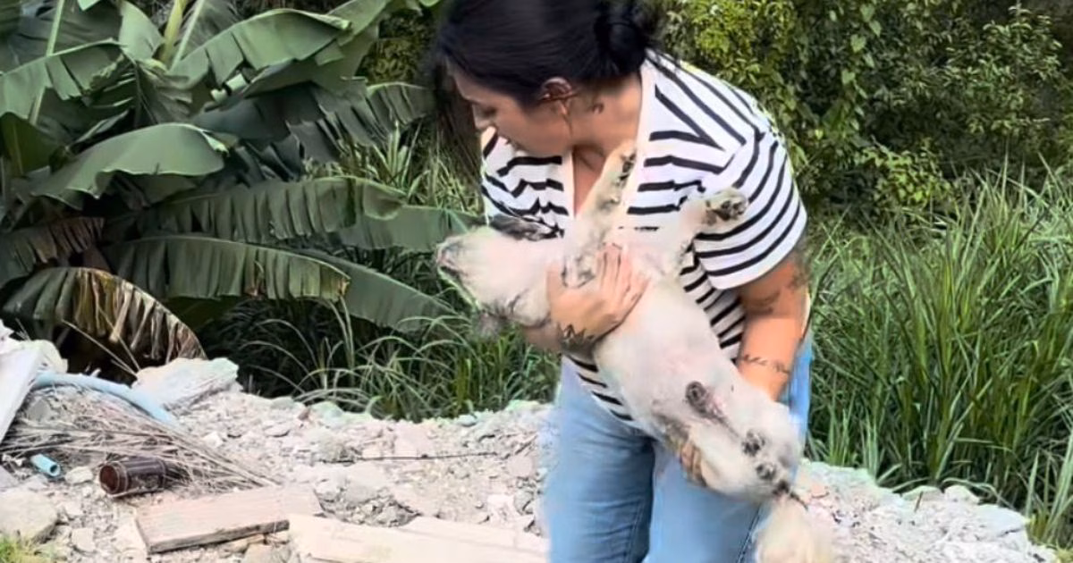 Um familiar de Bianca passava pelo local quando ouviu o choro do cachorro. Ao perceber que o som vinha de um barranco, desceu até o local e encontrou o cão debilitado, preso sob pedaços de madeira.