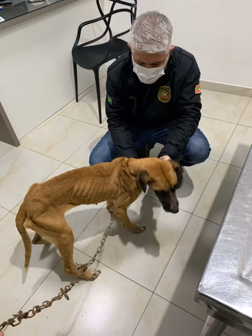 Segundo a Polícia, a ação teve o apoio da Acapra de Brusque. A cadela, de nome Shitara, foi encontrada em uma residência, em caquexia, nome que se dá ao estado extremo de desnutrição.