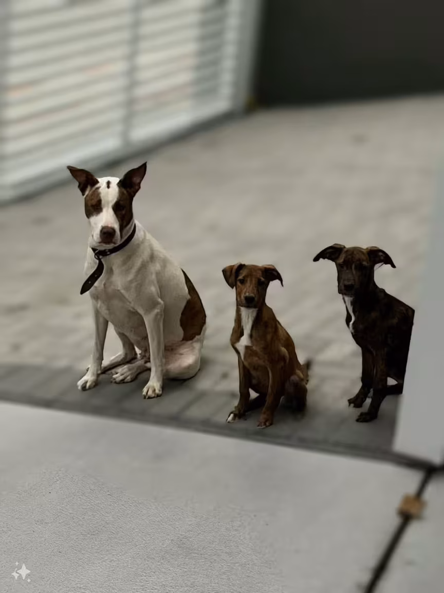 Sendo assim, tomou a decisão de levar os três cães consigo, com a intenção de oferecer-lhes abrigo temporário, até encontrarem um lar definitivo.