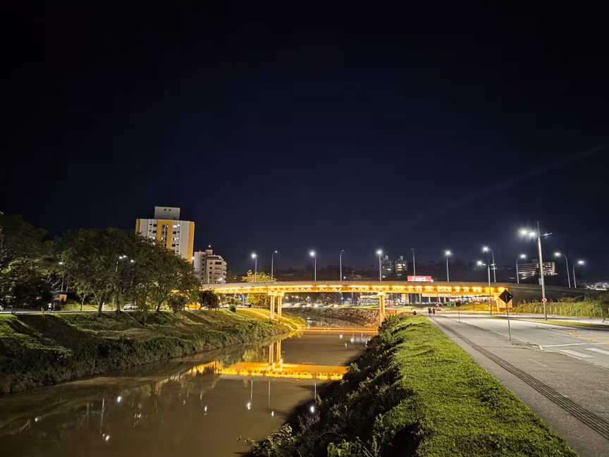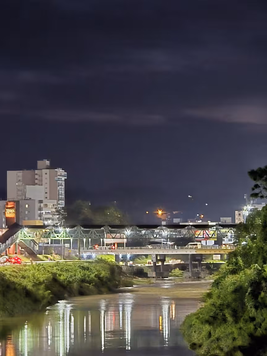 À medida que a noite avança sobre Brusque, o movimento de pedestres nas calçadas da avenida Beira Rio — especialmente nos trechos da área central da cidade — se intensifica, acompanhando o ritmo de quem utiliza o espaço para atividades físicas e momentos de lazer.