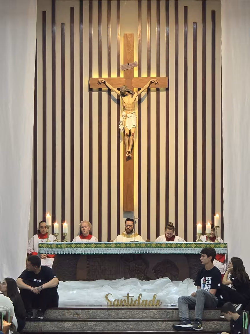 O altar, rodeado de jovens que ainda traziam nos olhos o brilho das experiências que viveram, era o cenário de uma fé contagiante.