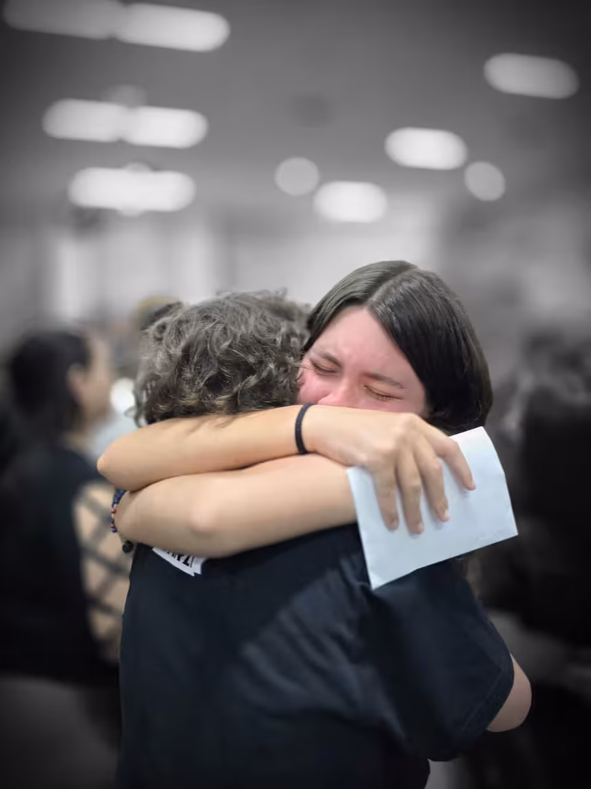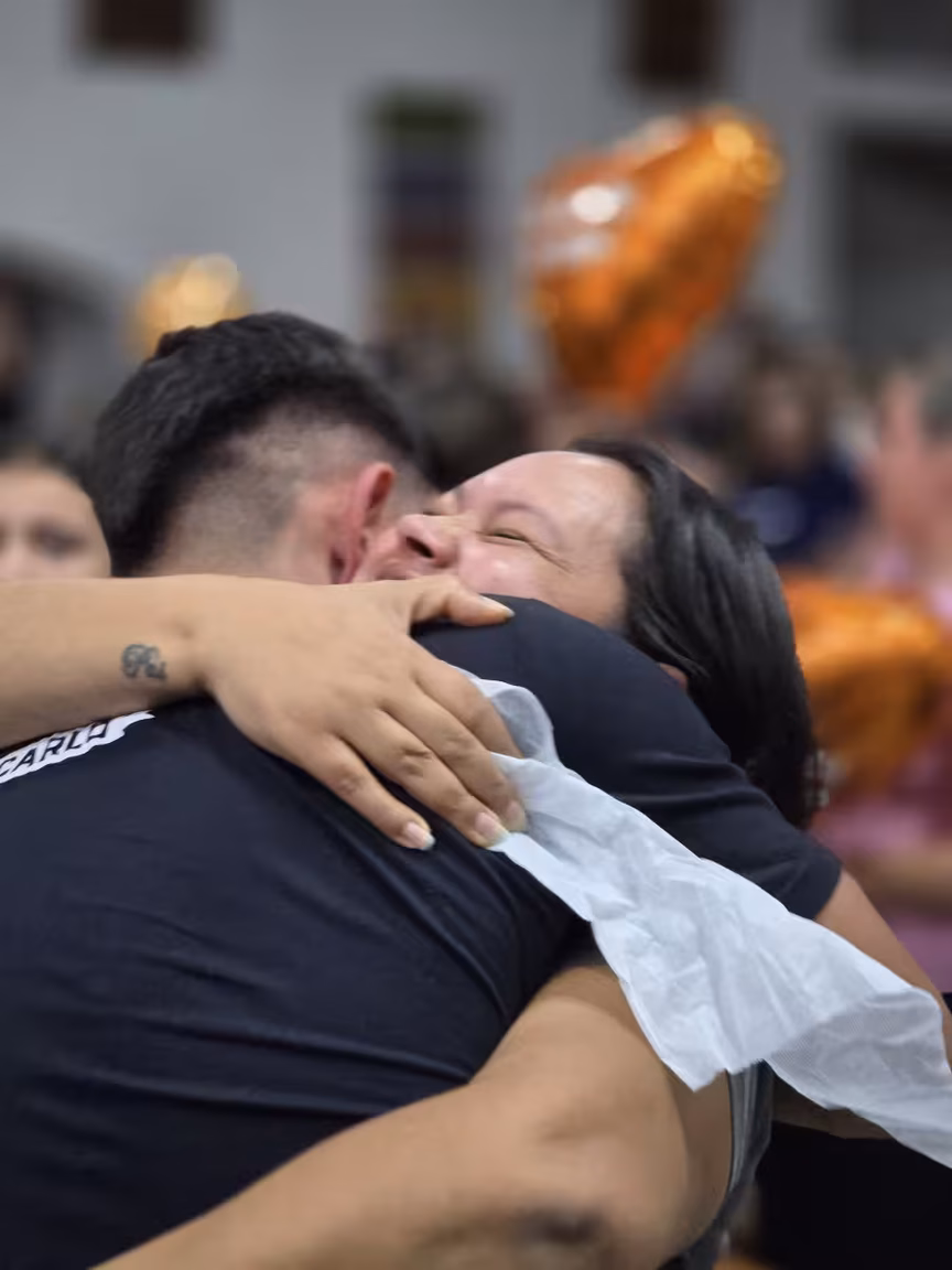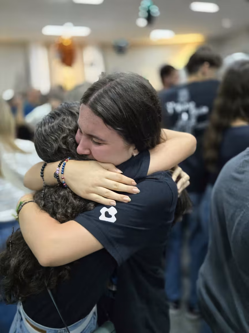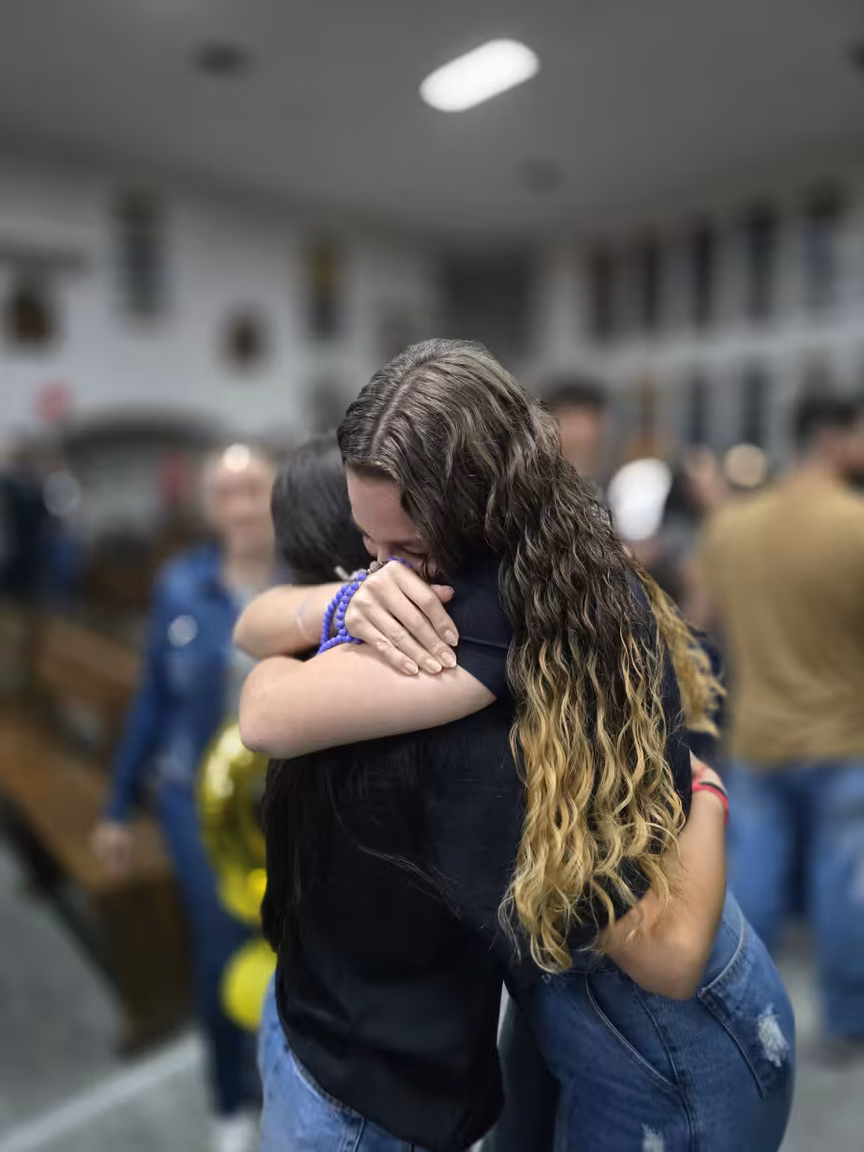 Abraços longos e apertados, rostos molhados por lágrimas de alegria, e sorrisos que não podiam ser contidos se misturavam em um cenário de profunda espiritualidade e reconexão.