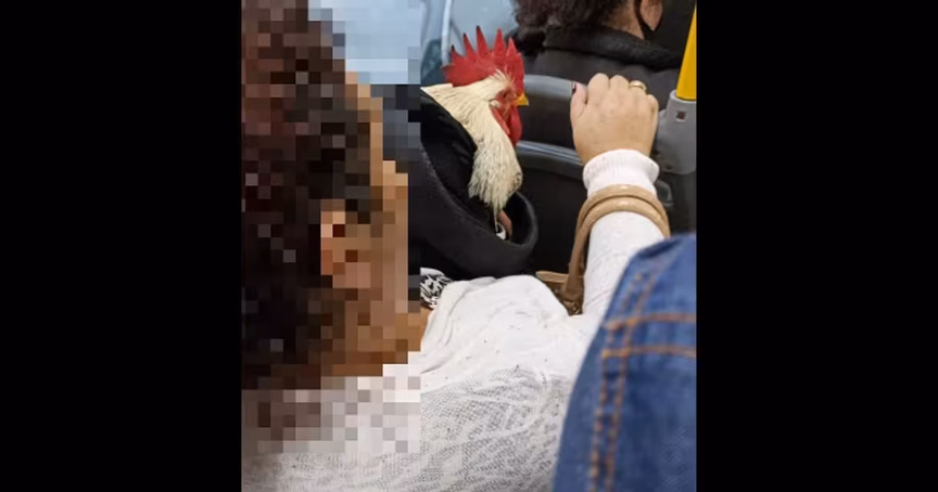 Um galo foi flagrado andando de ônibus com uma mulher em Blumenau nesta segunda-feira, 18. A imagem viralizou nas redes sociais após publicação do Diarinho de Blumenau.