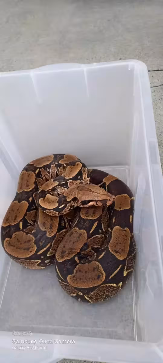A serpente da espécie Boa constrictor era não-peçonhenta. Entretanto, era de grande porte. Dois socorristas usaram equipamentos de captura para manusear a cobra e poder levá-la até o quartel em uma caixa segura.