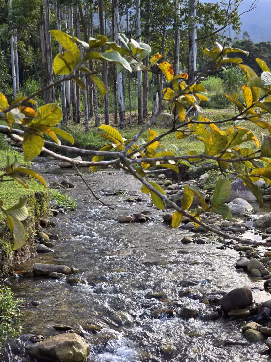 O riacho que contorna a propriedade não é apenas um elemento da paisagem; é a melodia suave que embala os dias nesse refúgio escondido.