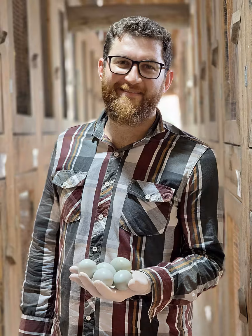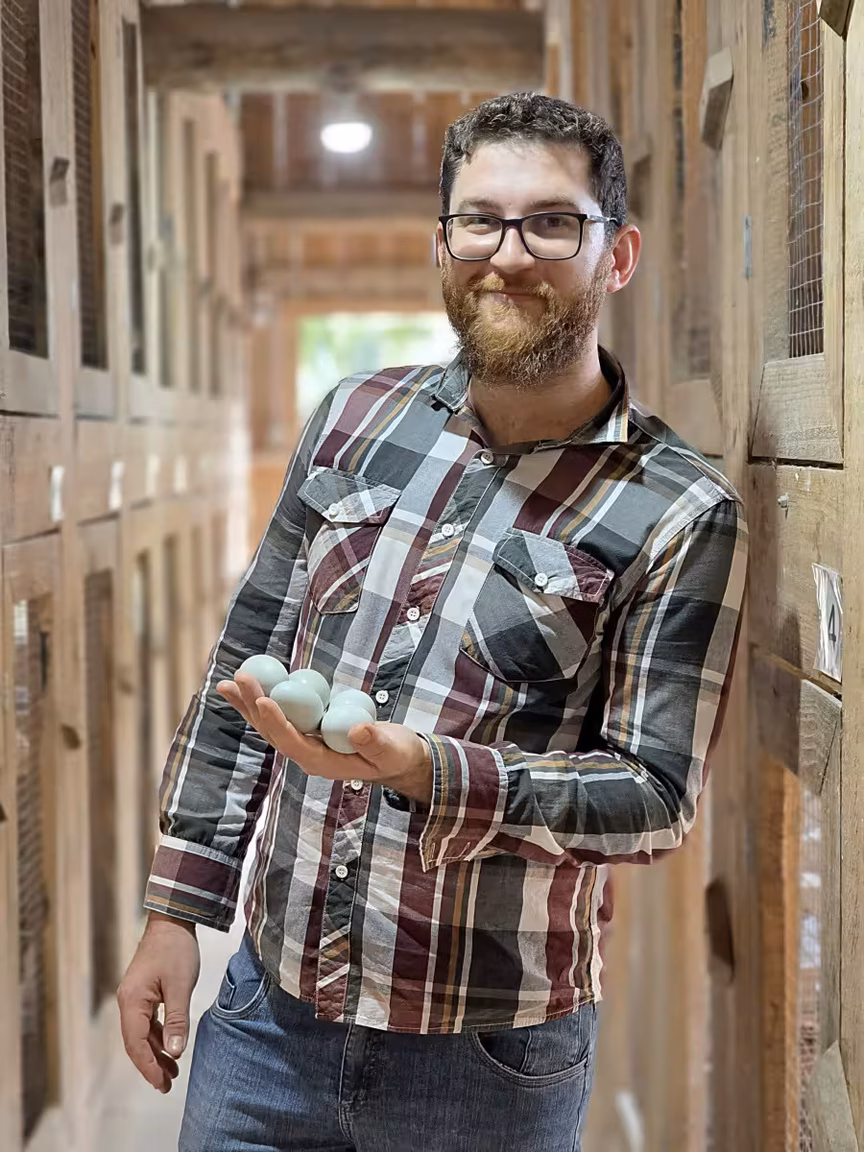 A diversidade impressiona: são mais de 800 aves de 70 variedades, e cada espécie é tratada com atenção extrema. Esse zelo se estende também aos ovos, que são meticulosamente numerados e catalogados.