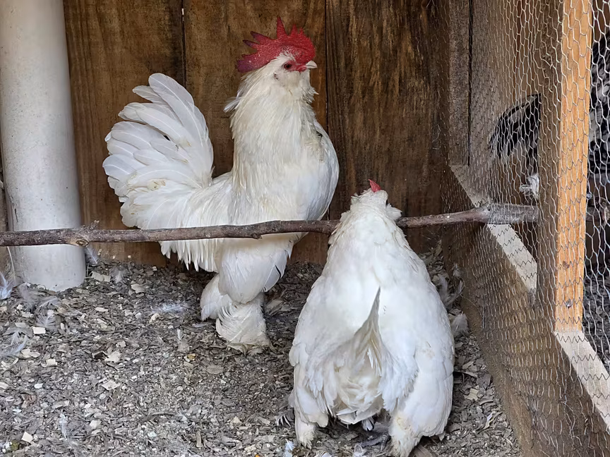 Entre as diversas raças do criatório, estão a polonesa, famosa pelo topete volumoso; a mini cochin, conhecida pelo porte pequeno e plumagem densa; e a sedosa, com penas macias que lembram seda.