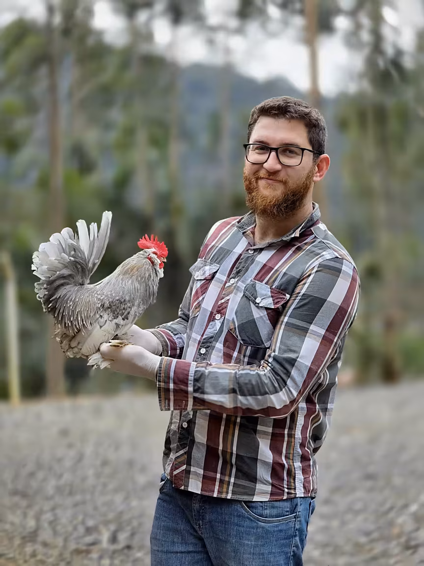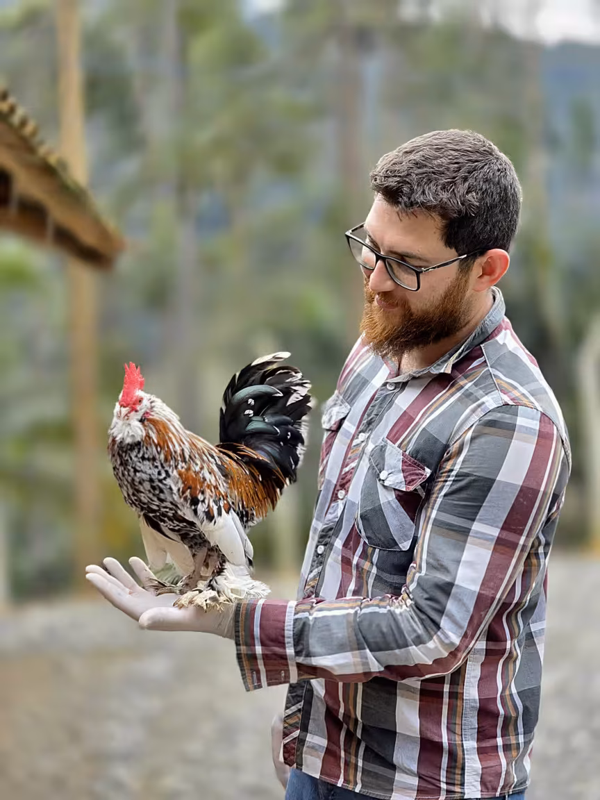 Desde a infância, ele demonstra uma admiração genuína pelas aves — uma paixão que cresceu junto com ele e hoje se reflete em cada detalhe do criatório, que é um dos maiores do Brasil no ramo de galinhas ornamentais.