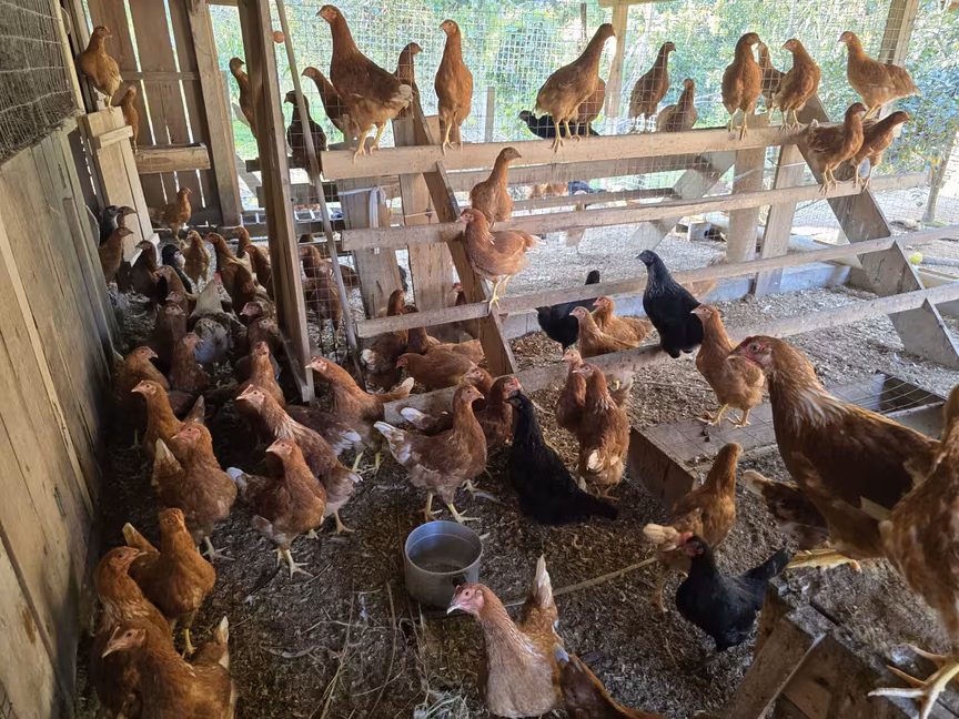 Hoje, seu galinheiro abriga mais de 350 aves, sendo 90% delas poedeiras e aproximadamente 10% destinadas ao corte.