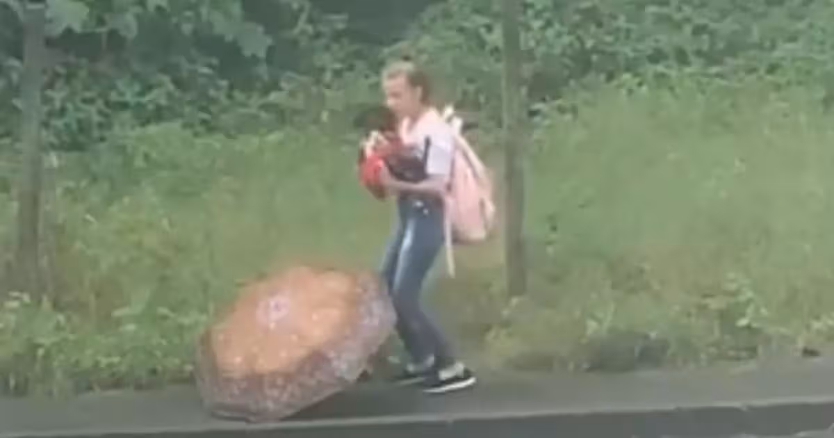 Uma menina de Blumenau viralizou nas redes sociais nesse fim de semana ao ser flagrada resgatando uma cachorra no meio da chuva na rua José Deeke, bairro Escola Agrícola, em Blumenau.