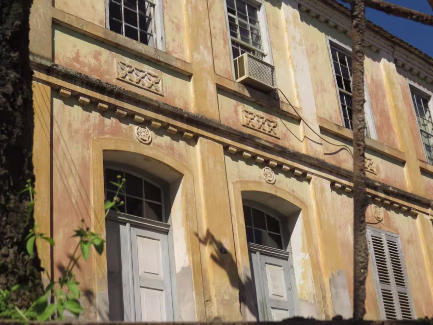 As paredes amareladas se mantêm firmes, em sua estrutura. Mas as diversas pinturas já realizadas dão um tom de aquarela à superfície do casarão. O desgaste de pintura mais recente, contudo, já começa a aparecer na edificação.