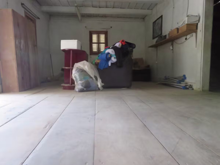 A casinha centenária serviu por um período, após a mudança da família, como uma confecção. As paredes internas foram removidas e hoje ela se resume a uma grande sala, com alguns fardos de malhas, madeiras e ferramentas.