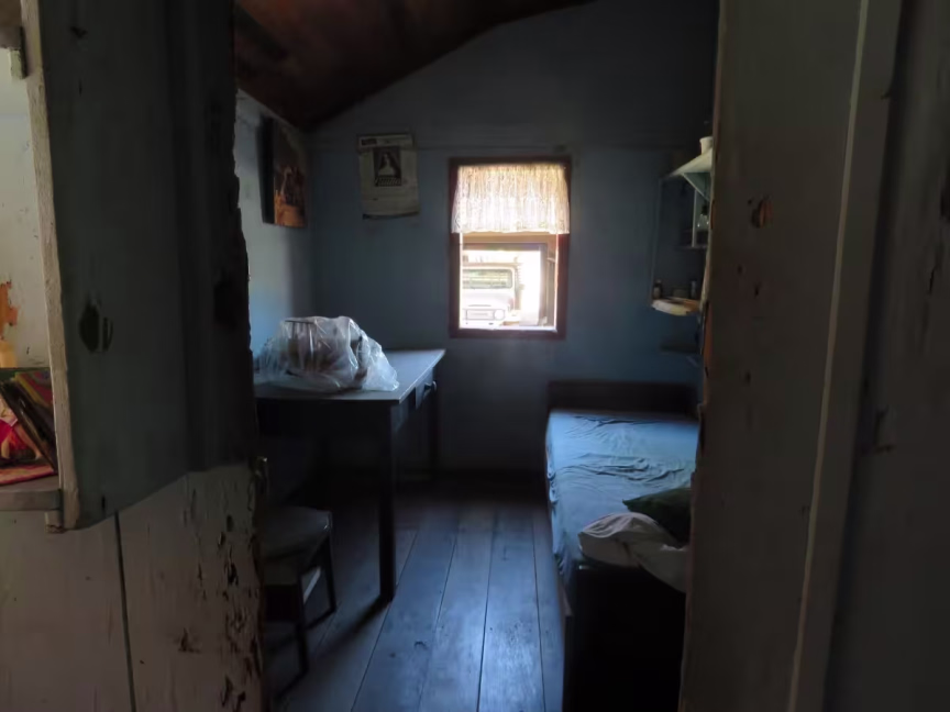 No outro quarto, uma pequena cama de solteiro e um armário dividem espaço com o outro lado da escada do sótão. Ali dormiam quatro dos 13 filhos do casal.