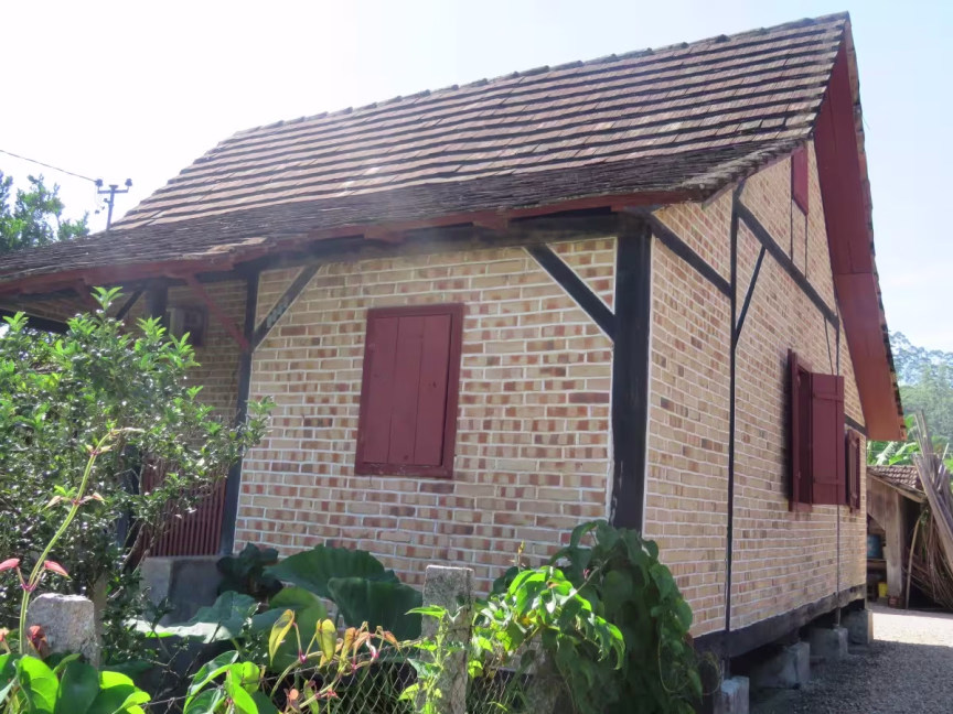 Eventualmente, a casinha de tijolinhos à vista cercada por muito verde e apoiada sobre blocos de pedras, é aberta, já que os oito filhos homens trabalham do lado, na serraria construída por Arnoldo em 1969.