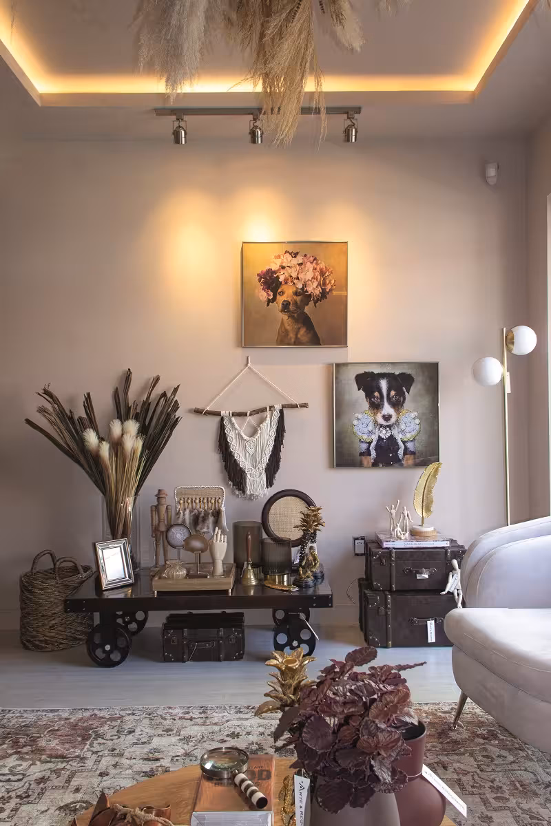 A sala de receber foi projetada em especial para promover o aconchego e tornar o ambiente convidativo para momentos de lazer. Fazendo o uso de peças de estilos distintos, cria uma composição única entre si mostrando que diferentes elementos juntos podem ser harmônicos e obterem um resultado elegante e atraente.
