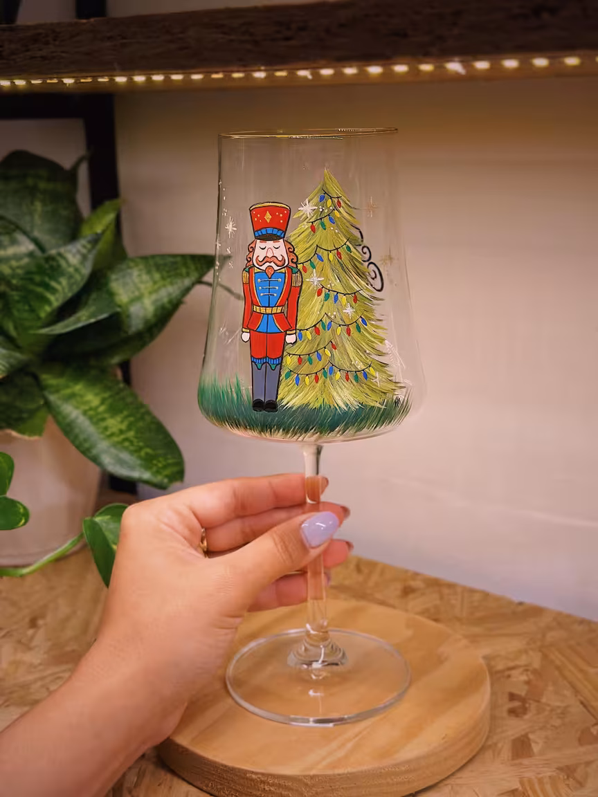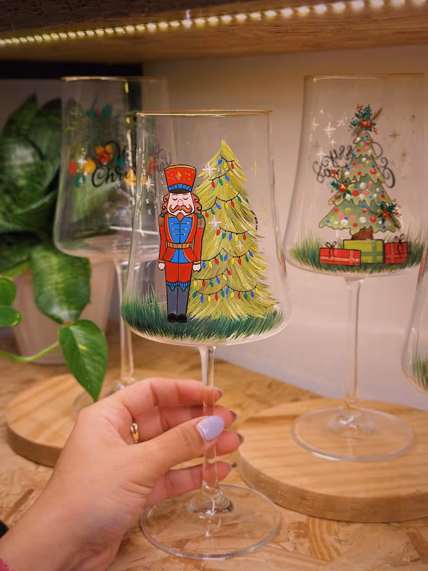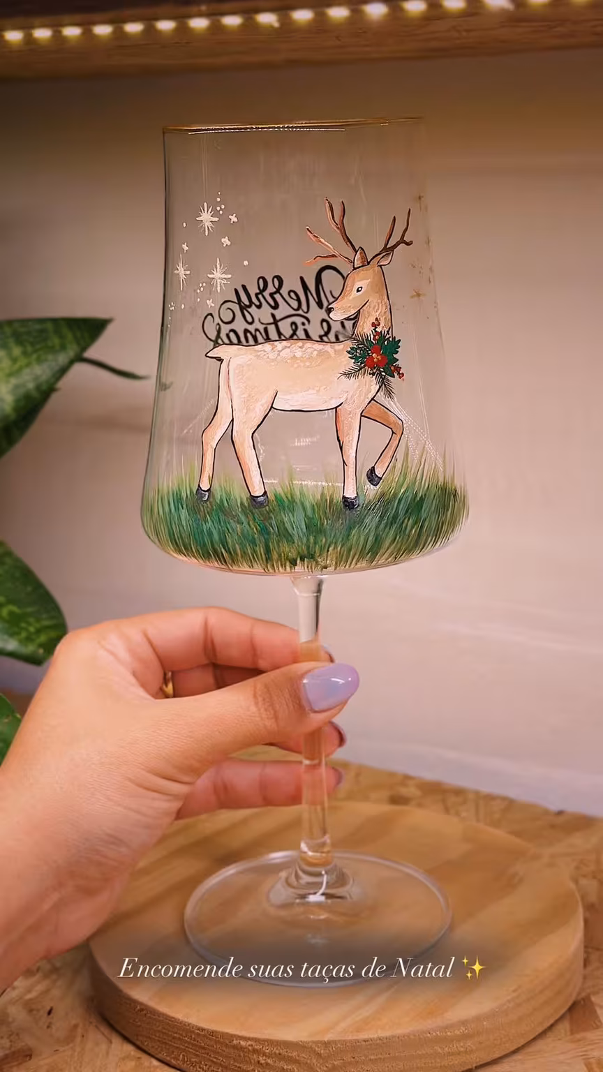 Karolini se entrega às criações natalinas, decorando taças e xícaras com motivos que evocam o espírito mágico dessa época, trazendo à tona a alegria e o aconchego da ocasião.