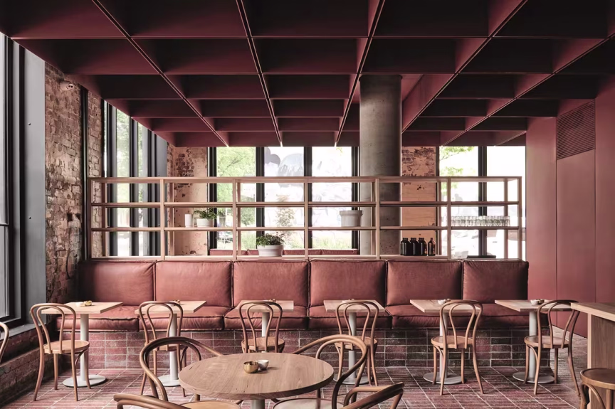 Outro espaço da Casacor RS 2019 que utilizou da técnica tom sobre tom foi a “Sala Brasileira”, onde as cores das sementes de árvores nativas inspiraram a concepção do ambiente em tonalidades neutras, criando uma atmosfera limpa, aconchegante e minimalistaPara fazer uso do tom sobre tom, não é necessário que a cor seja empregada em grandes áreas. Ela pode ser utilizada de maneira moderada como neste espaço em que o verde foi escolhido para compor a técnica, sendo incorporado apenas em itens soltos como o mobiliário e objetos de decoração, os quais podem ser facilmente trocadosAmbientes comerciais também podem ousar e fazer uso da técnica. Este restaurante localizado na Austrália aproveitou os tons terrosos e mais avermelhados dos tijolos que faziam parte da história do local para compor o restante da decoração, onde a cor foi incorporada no teto, paredes e estofados do ambienteNo ambiente “Sala do Luis”, idealizado para a Casacor RS 2019, o tom azul foi o escolhido para cobrir uma das paredes do cômodo. A poltrona logo à frente na mesma cor cria a unificação visual, já os quadros expostos, que pertencem ao acervo pessoal de Luis Fernando Verissimo, trazem também o azul, ao mesmo tempo em que contrastam e ganham destaque sobre a parede colorida