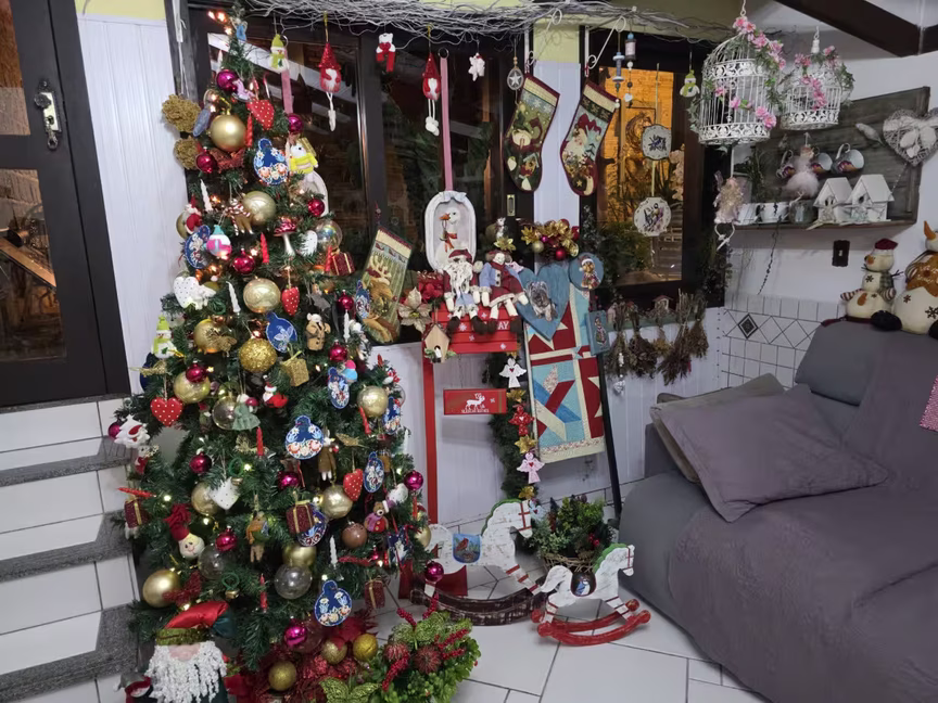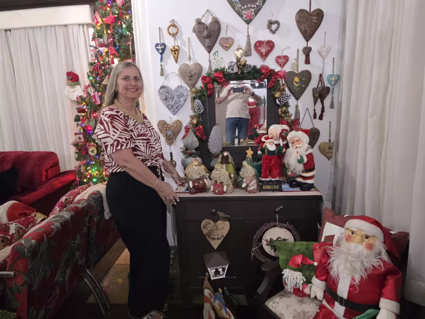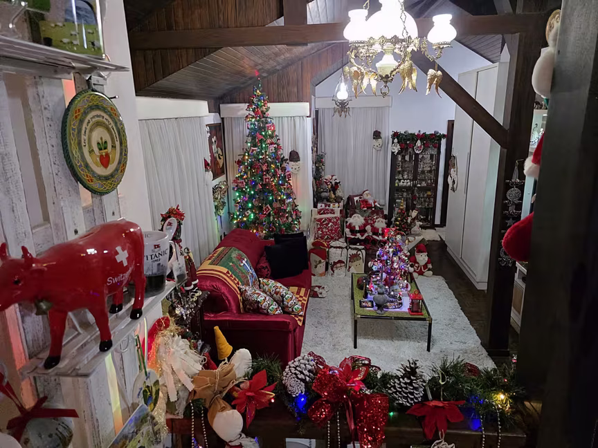 É nesse cenário que ganha protagonismo a moradora Luciana Maria Baron Gamba, responsável por transformar cada cômodo em expressão viva do Natal.