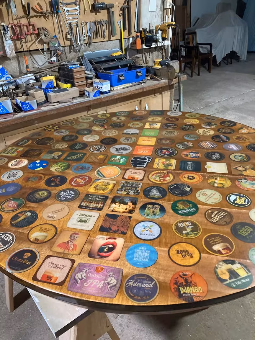 Com habilidade e criatividade, ele cria mesas, cadeiras, cubas para pias e muitas outras peças impressionantes