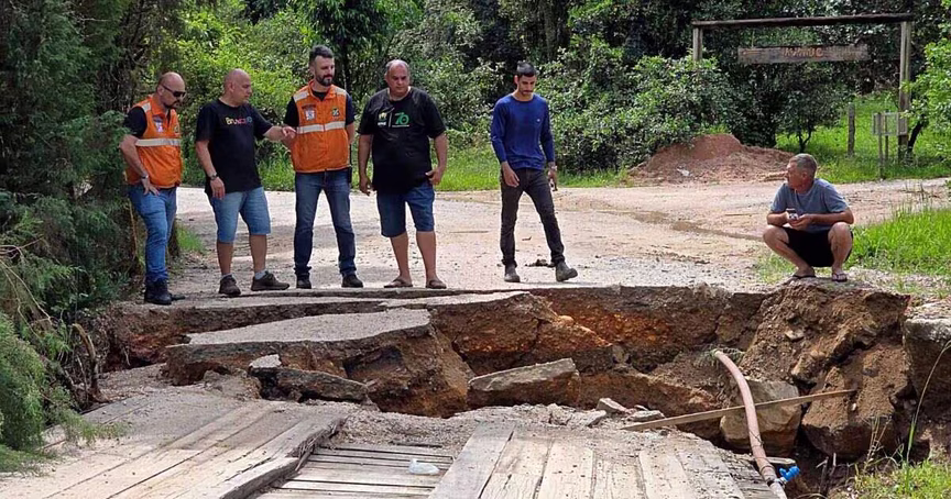 Defesa Civil isola trecho onde ponte de madeira cedeu no Cedro Alto, em Brusque