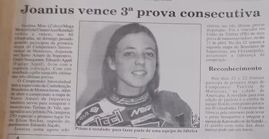 Memória do Esporte: Joanius Moa campeão no motocross, em 1995