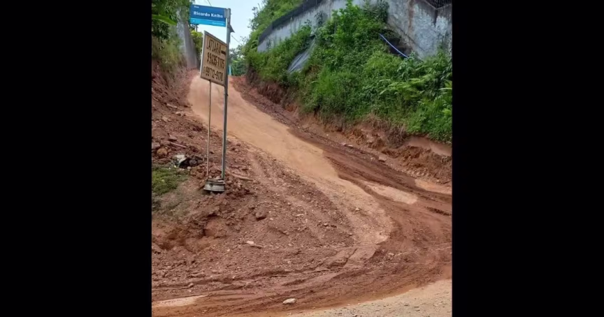 Moradores reclamam de barro e poeira após obra na rua AZ 44, no bairro Azambuja 14/12/2021 • Lorena Polli