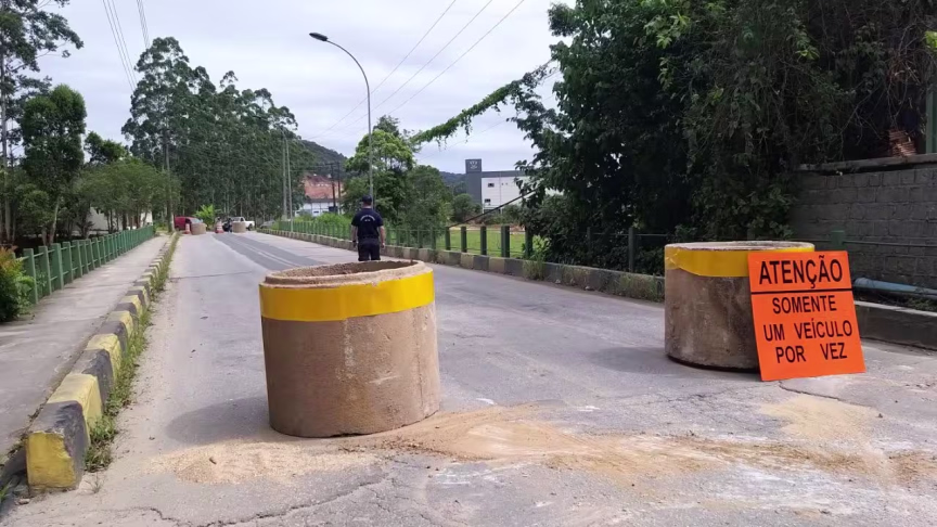 GALERIA – Confira imagens da restrição da ponte Alois Petermann no Rio Branco, em Brusque 09/12/2021 • Lorena Polli