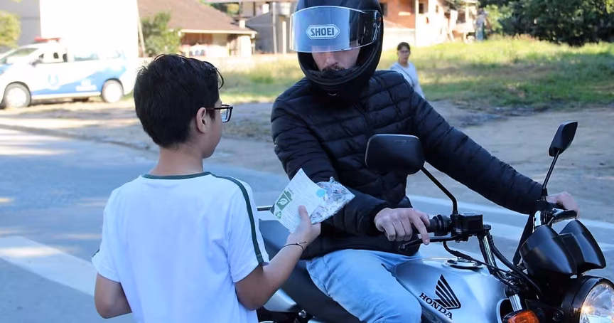 GALERIA – Blitz educativa em prol do meio ambiente mobiliza alunos de escola em Brusque