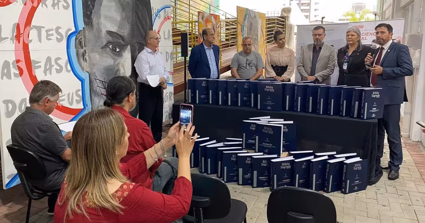 Exemplar da Bíblia escrita em braile é entregue à Fundação Cultural de Brusque