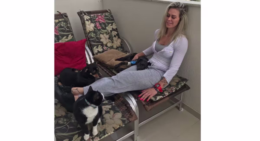 Luciane Fuechter com os lindos pets Frajola, Valeria e Billy