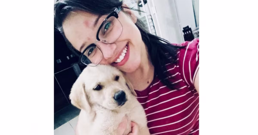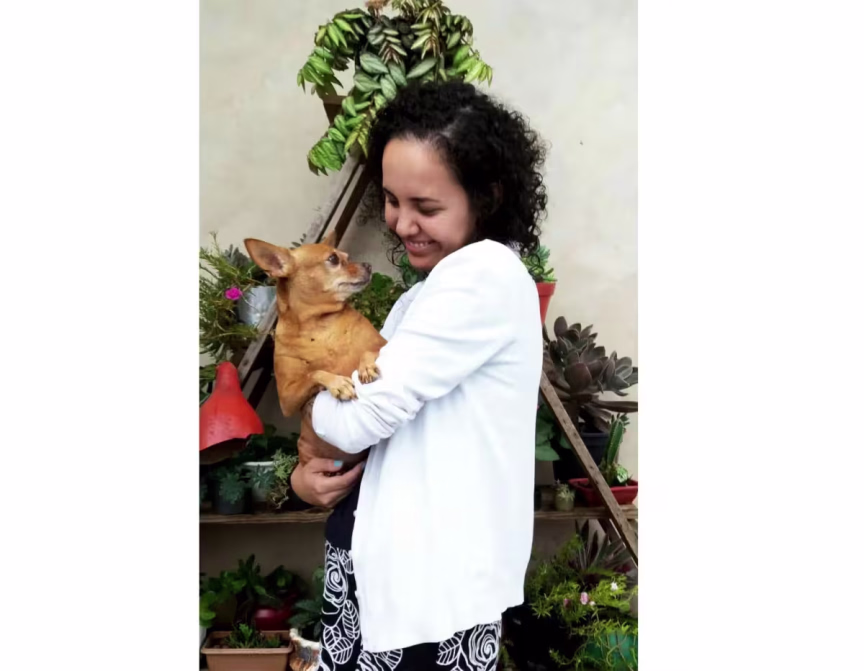 Jesica Erica de Souza com seu cachorrinho Boomer