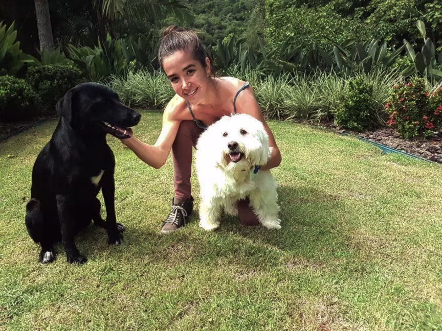 Bruna Dell’agnolo com seus cachorros Fantasma e Cacau
