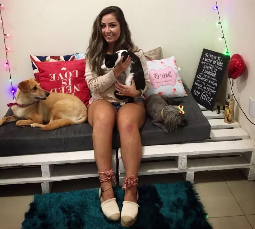 Dariele Ferreira com as pets Pink, Chanel e Frida