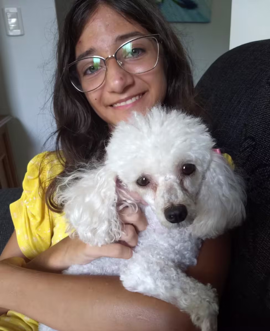 Isabelle Martins com sua linda cachorrinha Cacau