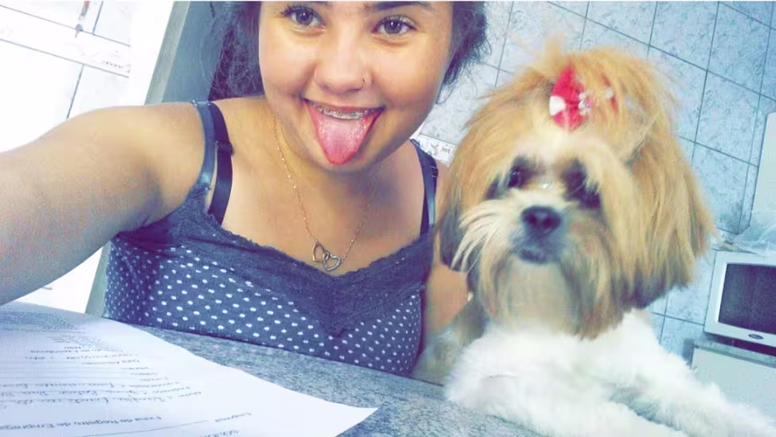 Laylla Cristina com sua cachorrinha Samantha