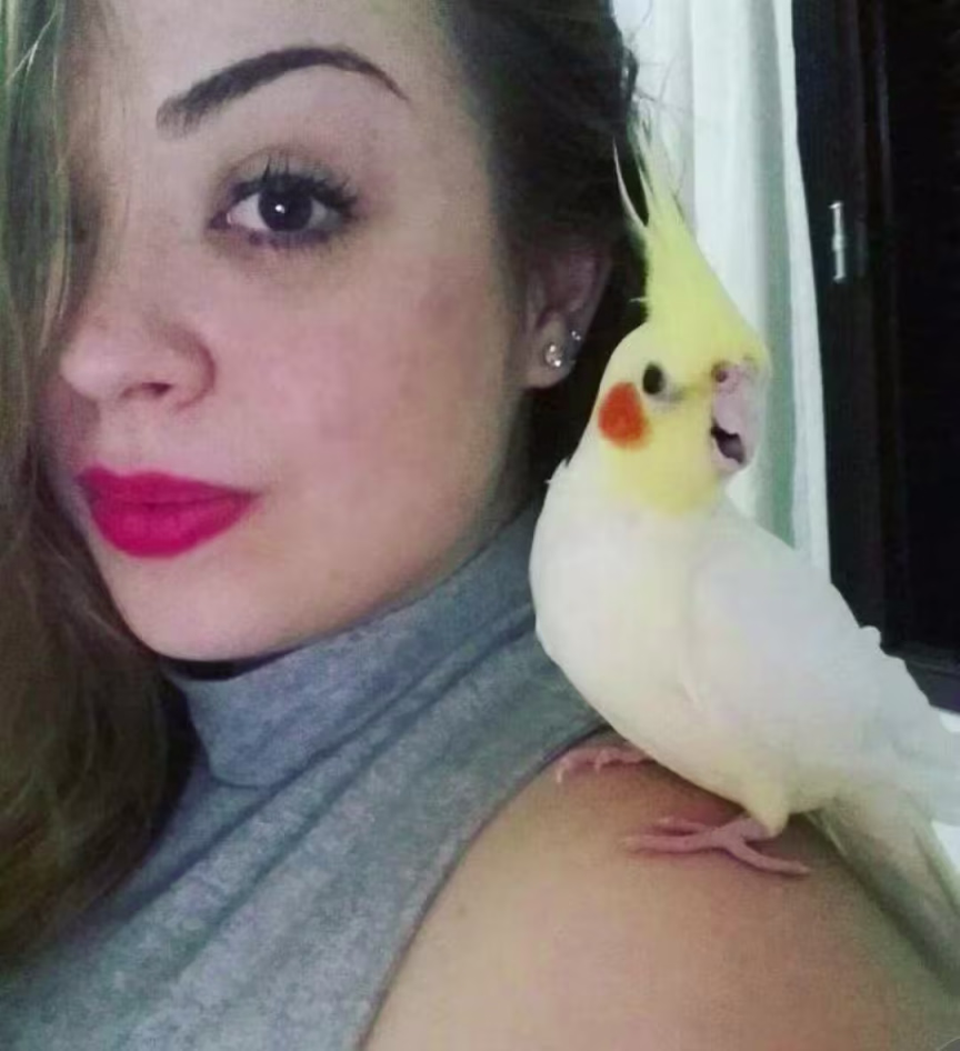 Nicole Zanon e a linda calopsita Penélope