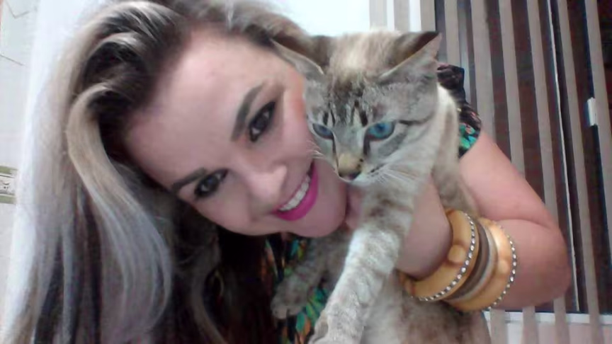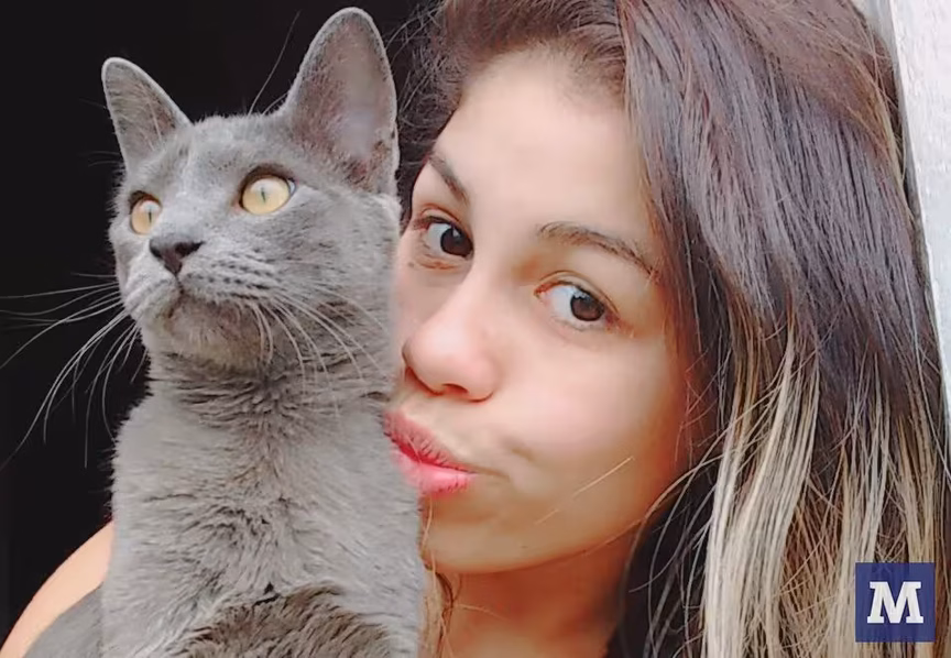 Jéssica Bruna da Silva Santos com o gatinho Mandrágora