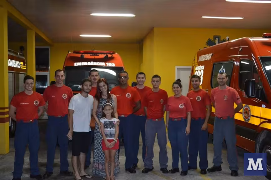 Família visita bombeiros depois de acidente, em Brusque