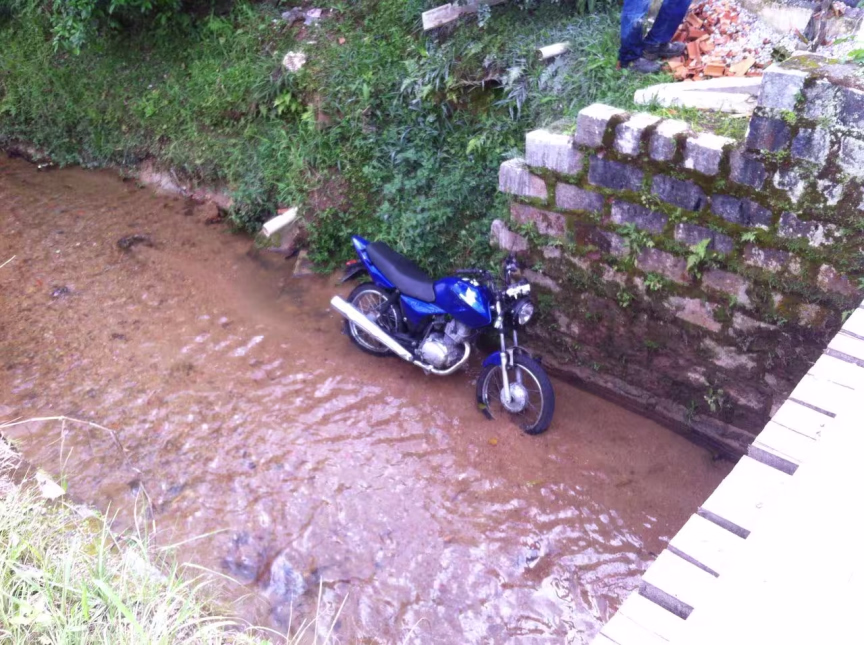 Motocicleta cai em ribeirão ao colidir na lateral de veículo, no São Pedro 17/08/2017 • Miriany Farias