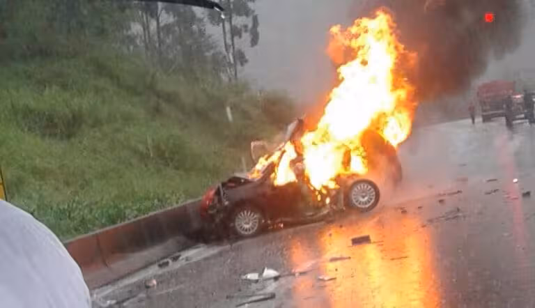Dois homens em um carro de Brusque morrem carbonizados em grave acidente na BR-101 31/05/2017 • Miriany Farias