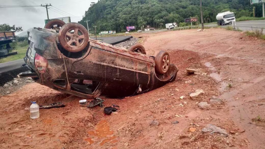 Veículo de Brusque capota próxima à curva da morte, na rodovia Antônio Heil 21/03/2017 • Miriany Farias