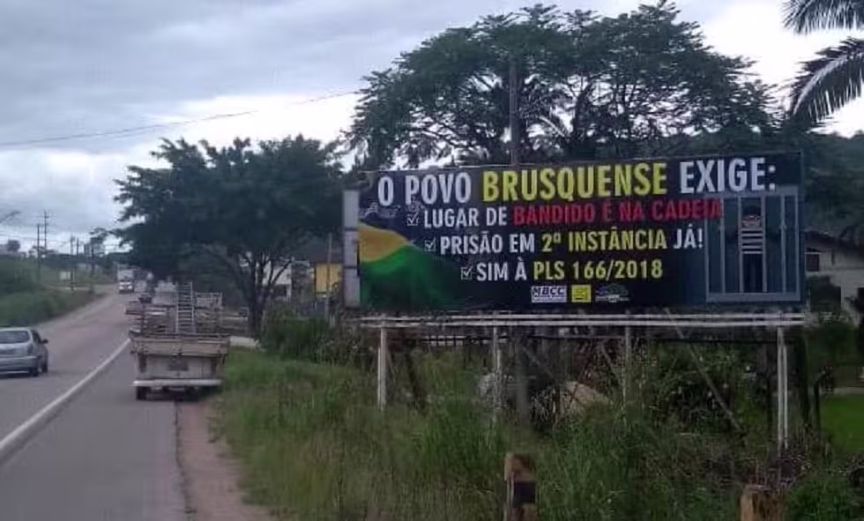 Outdoors em apoio à prisão em segunda instância são instalados em Brusque
