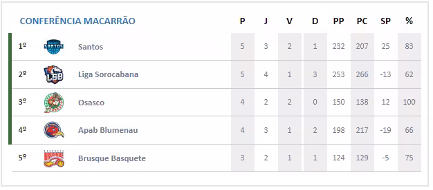 O Santos vem de vitória por 86 a 72 sobre a Apab Blumenau no sábado, 23, fora de casa. Na primeira rodada, perdeu por 80 a 72 para o Osasco-SP.