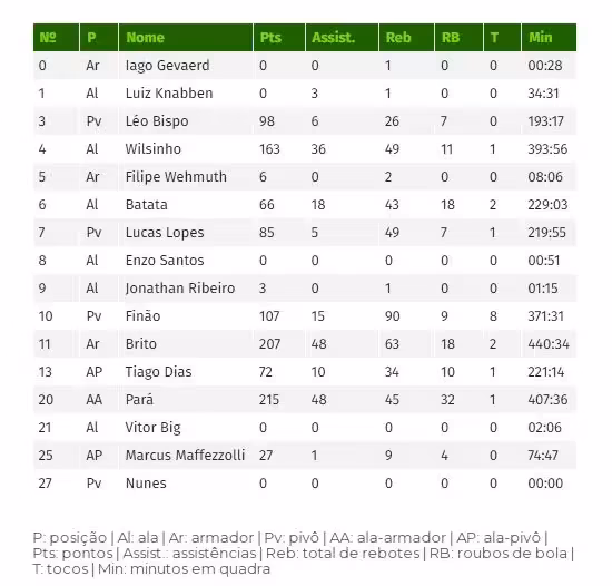 Outros jogadores do time vice-campeão brasileiro também se destacaram ao longo da competição. O pivô Finão, de 37 anos, esteve entre os com maiores médias de tocos e rebotes. O ala Wilsinho também esteve entre os 10 principais pontuadores.