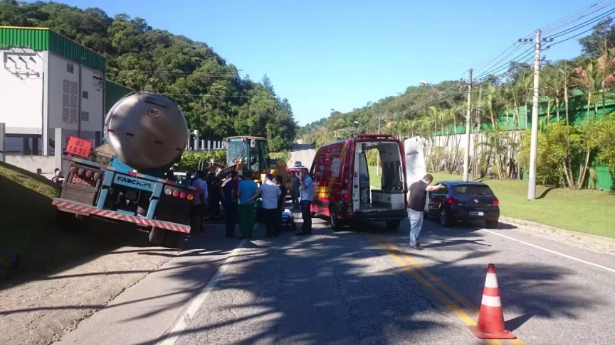 Homem fica ferido após ser atropelado por carreta, em Botuverá