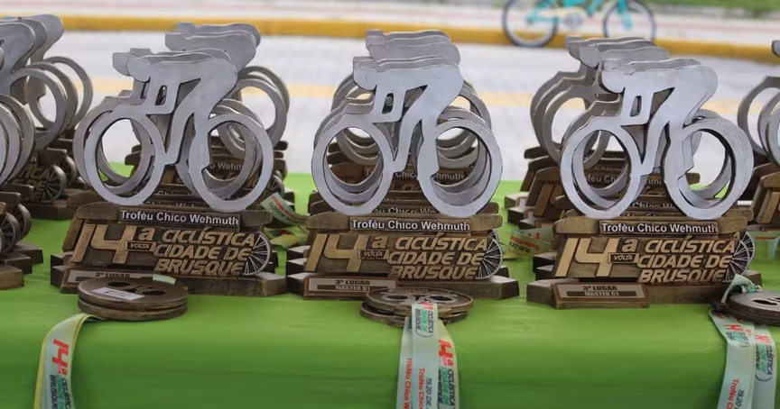 Troféus e medalhas da 14ª Volta Ciclística Cidade de Brusque Foto: Rafael Moreira/O Município