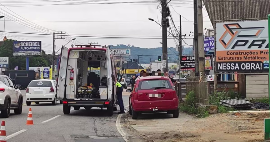 Ciclista fica ferido e é encaminhado ao hospital após colisão contra carro em Brusque