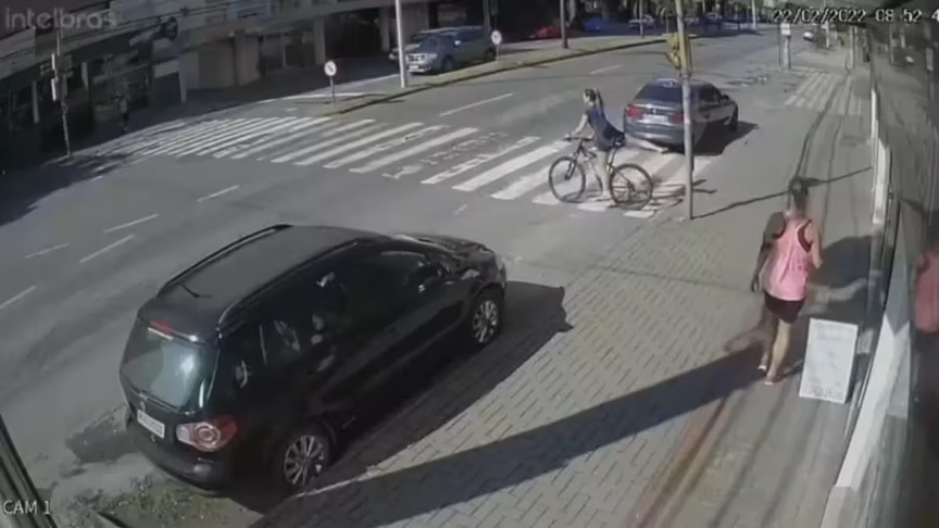 VÍDEO – Carro atinge ciclista e cai no rio Itajaí-Mirim em Brusque