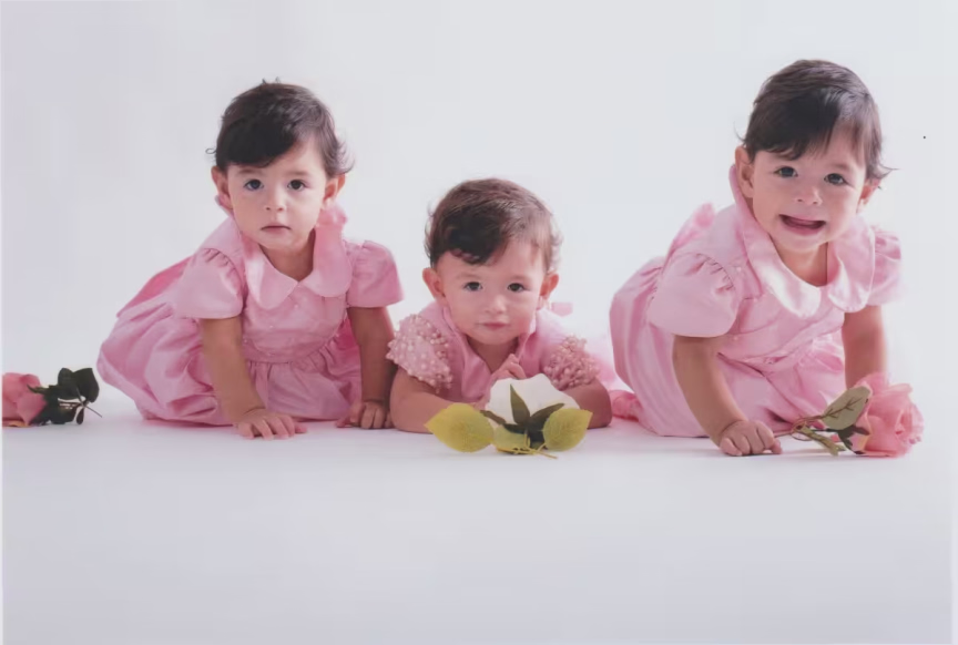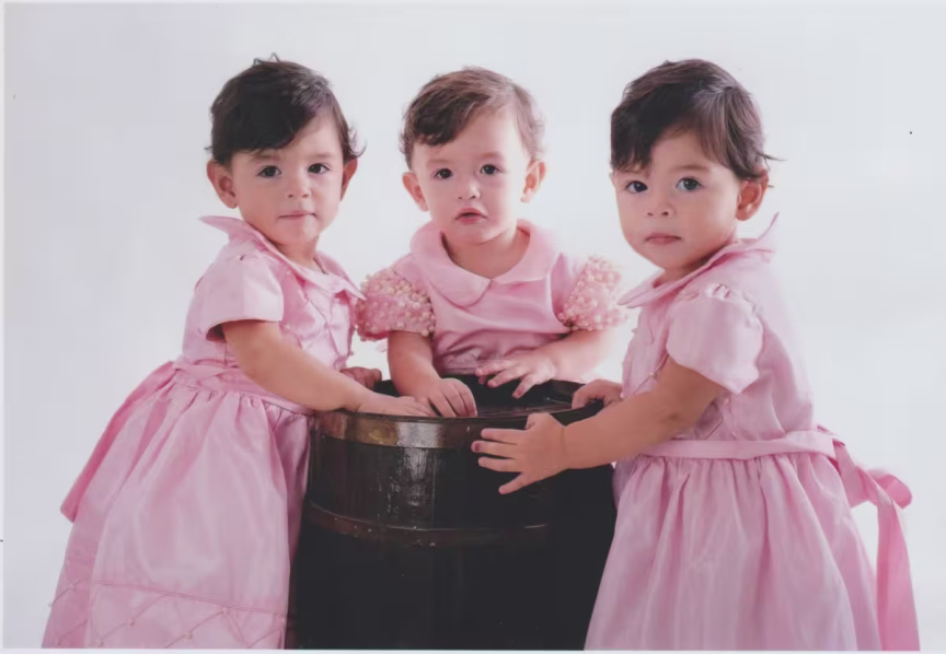 Maria Izabel e Maria Valentina são gêmeas univitelinas, ou seja, idênticas. Já Maria Helena, que estava em outra placenta, possui traços diferentes das irmãs.
